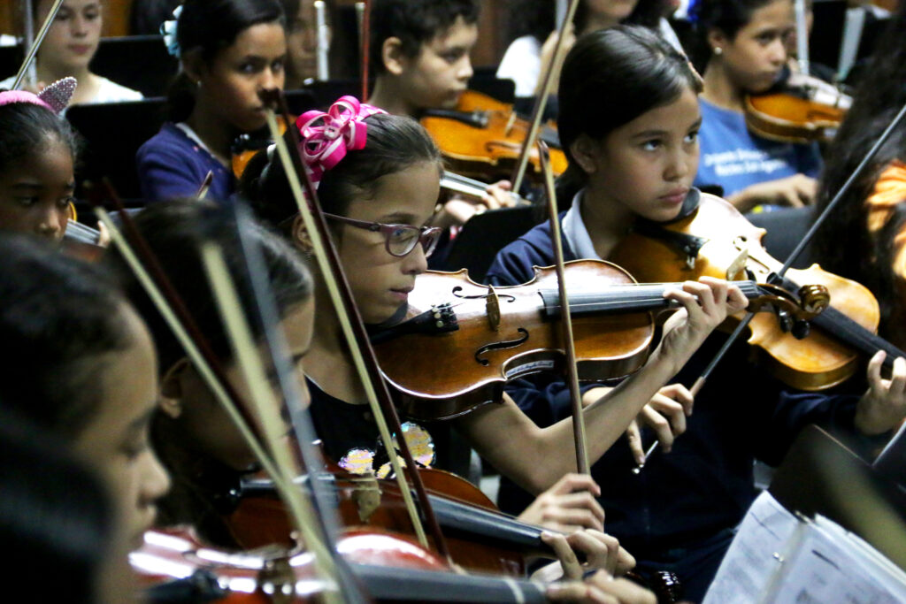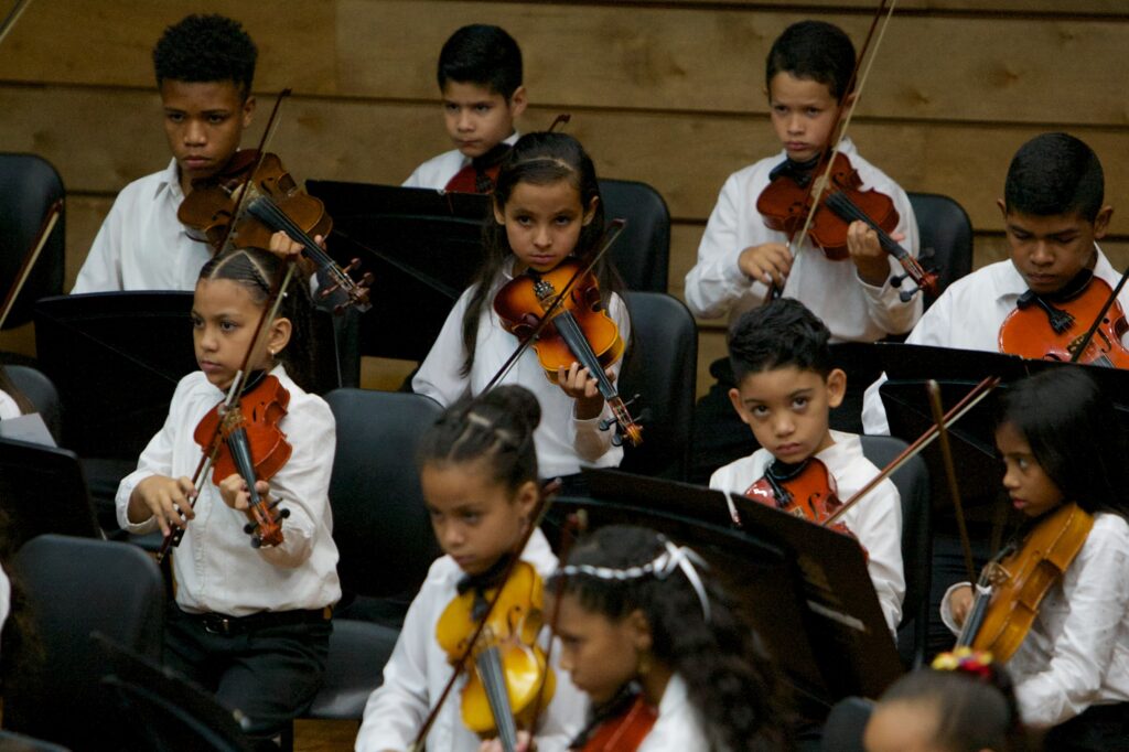 Here the orchestral repertoire grows in demand and discipline; through this, the child develops his interest in self-improvement, healthy competition, and in giving his best to achieve the proposed goal, put on a good concert, participate in regional and national seminars, the opportunity to participate in the Children’s National Symphony Orchestra that has been perhaps the most precious jewel of El Sistema. His capacity on the instrument, solo repertoire, etc., is also developed in parallel.